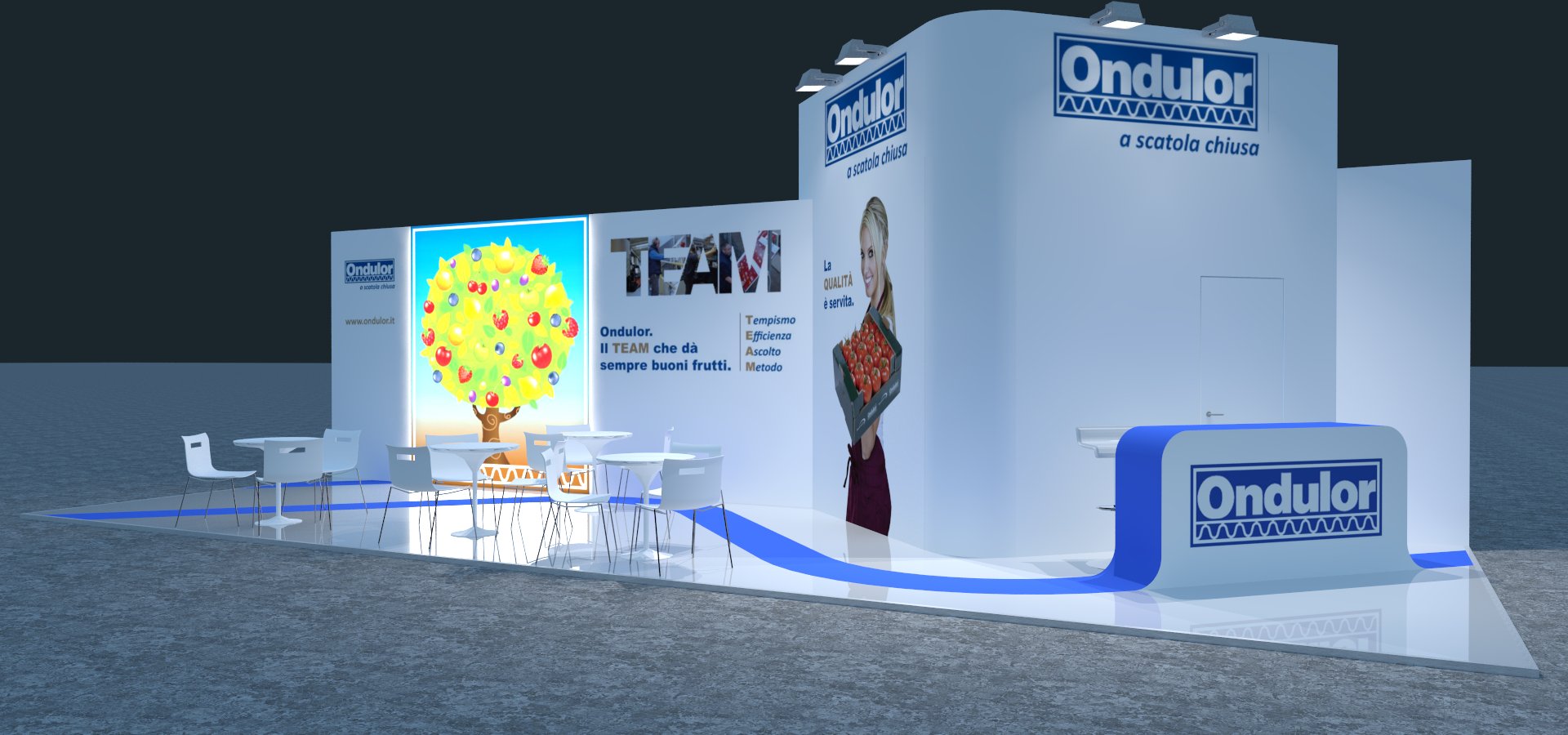 Quale migliore occasione per rappresentare il mondo Ondulor se non con la riproduzione di questo semplice concetto che fa da filo conduttore in tutte le scelte progettuali dello stand?